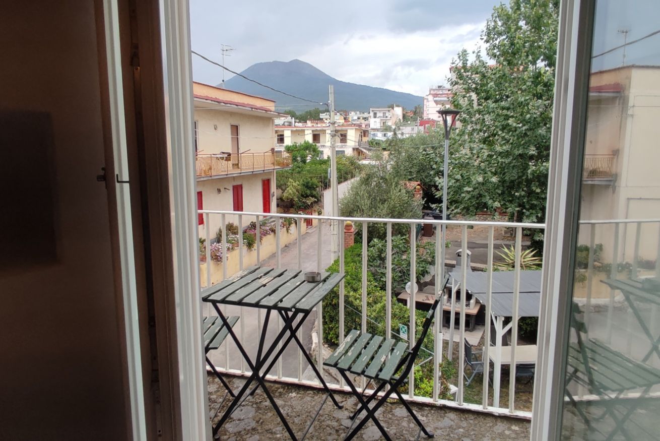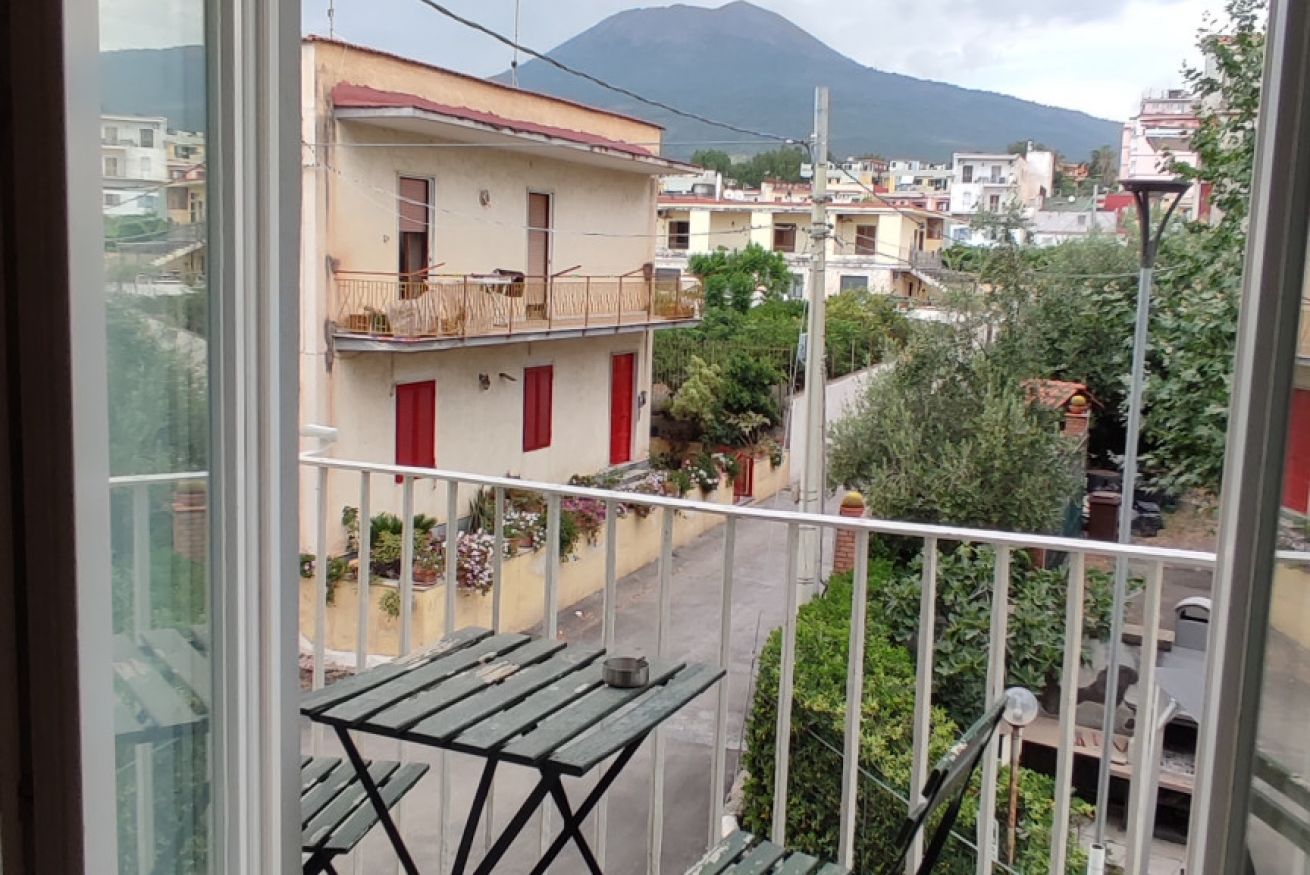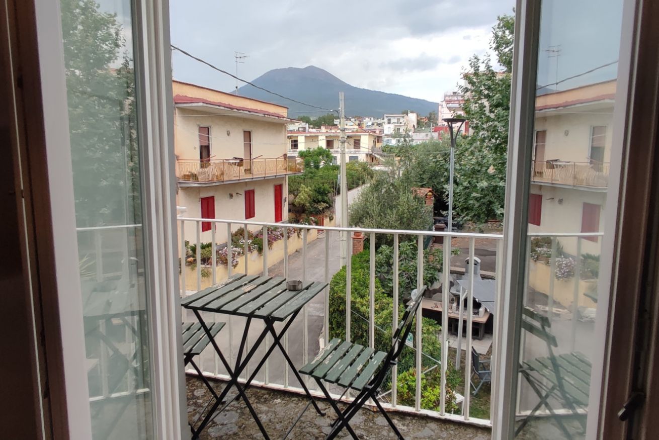 L' appartamento gode inoltre di un balcone con vista panoramica sul Vesuvio.