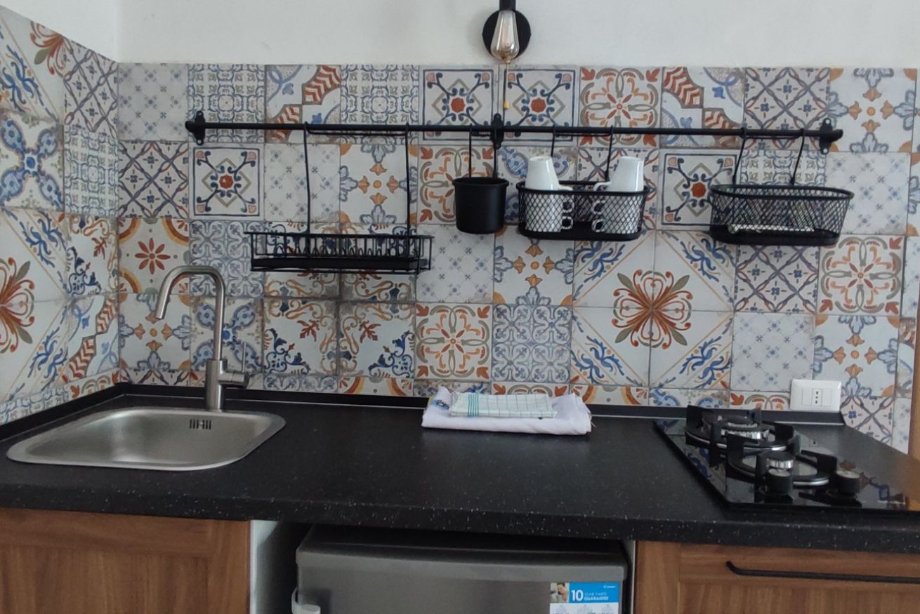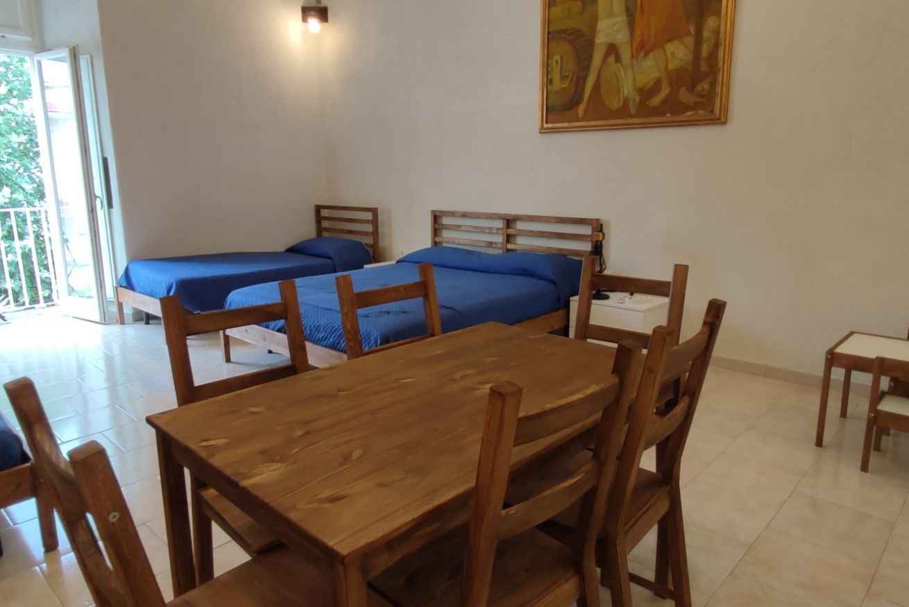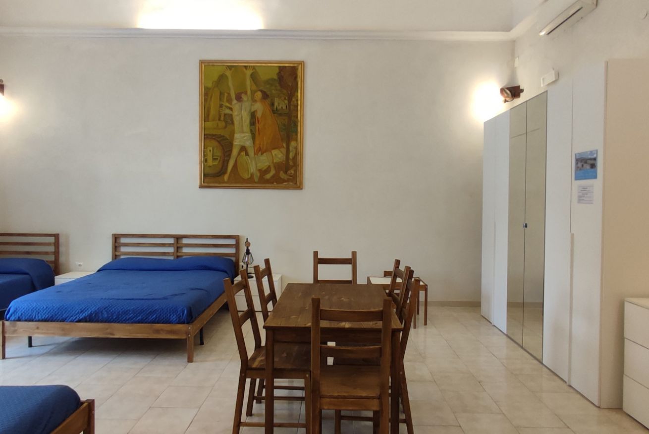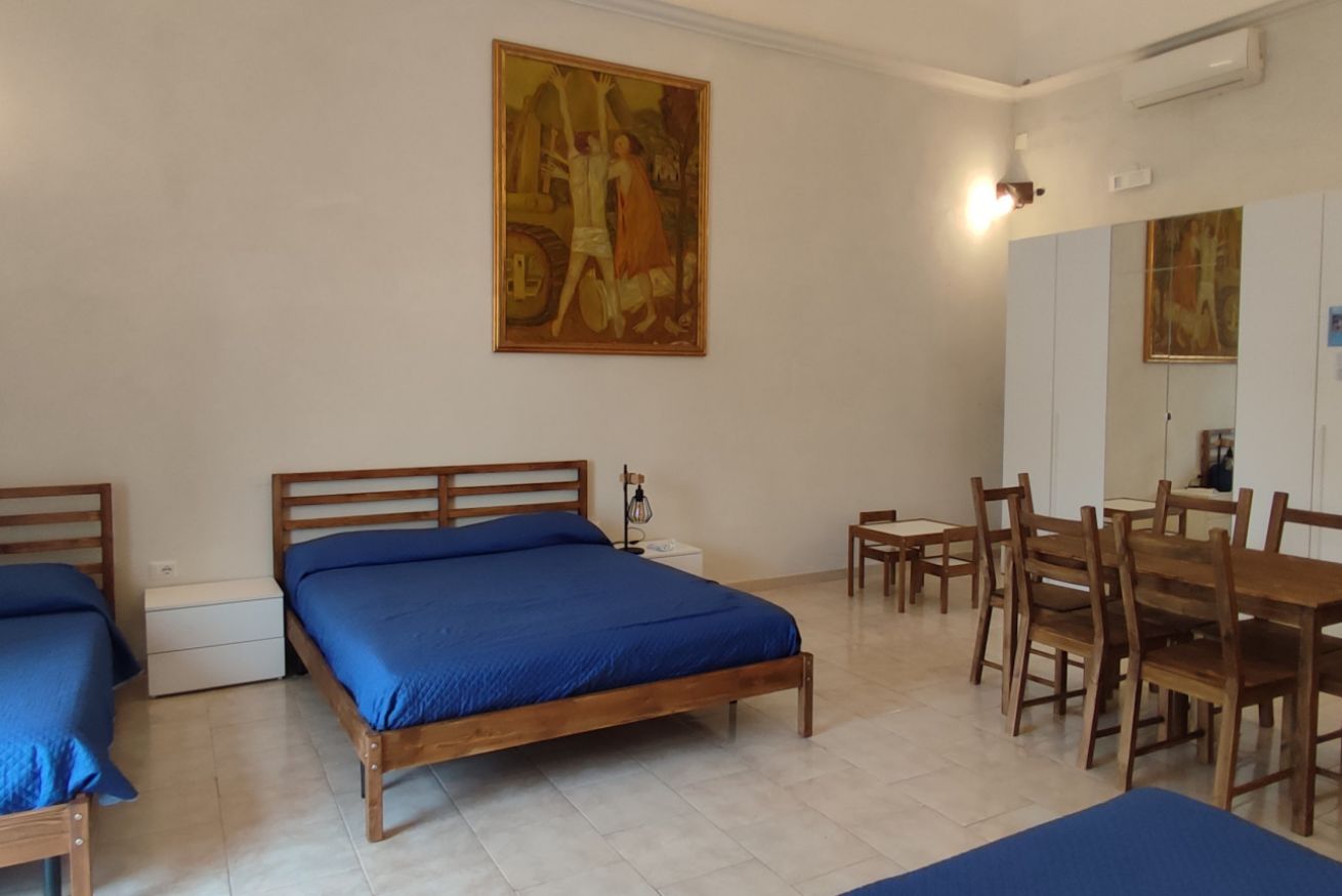 Sito al 1° piano dell'edificio principale, moderno e confortevole, il monolocale è ampio e luminoso. E' composto da 1 ampia camera con 2 letti matrimoniali e 2 letti singoli con angolo cucina + bagno privato.