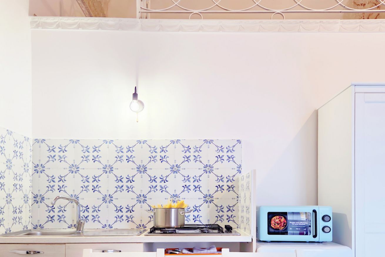L' appartamento gode inoltre di un balcone con vista panoramica sul Vesuvio.